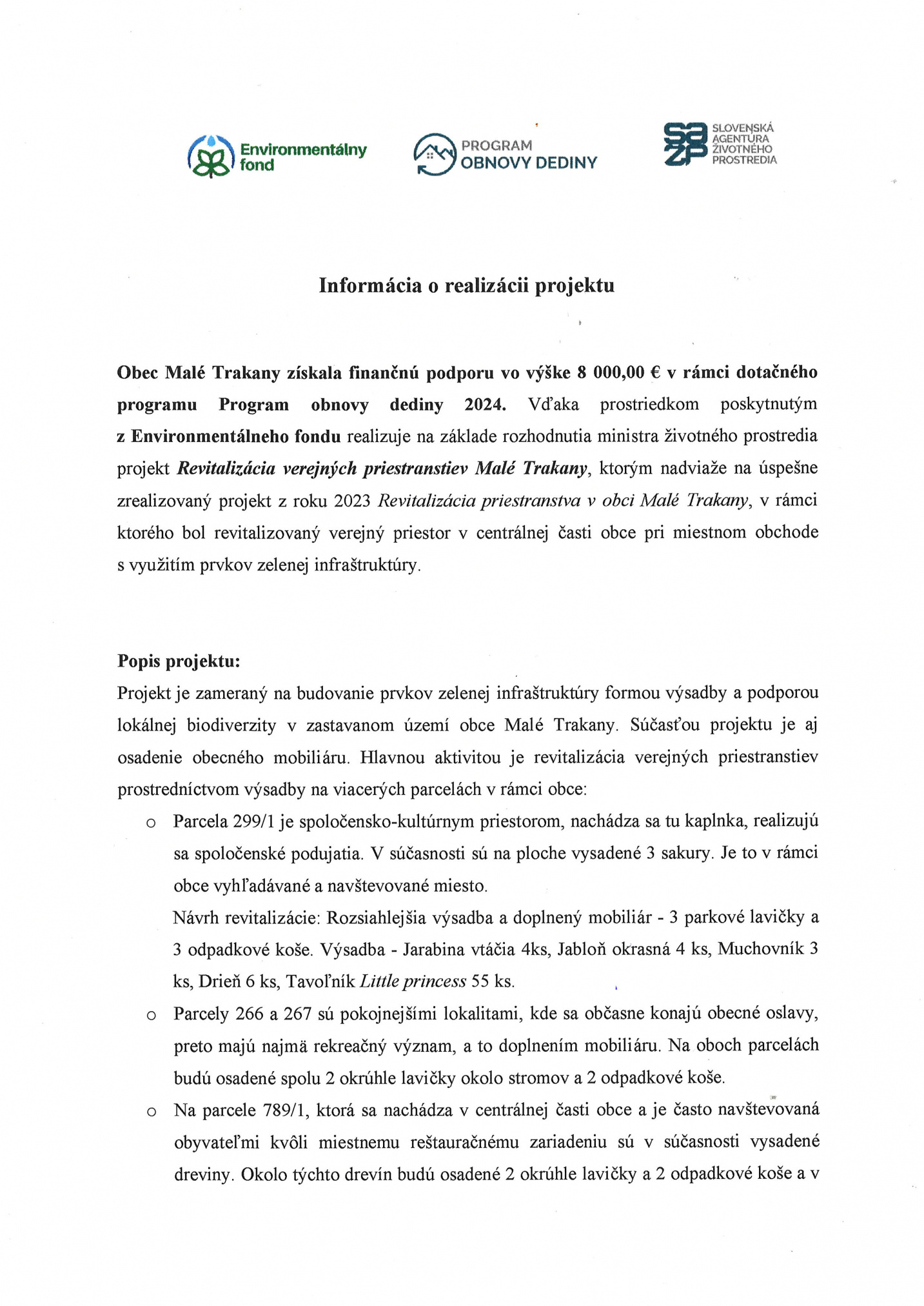 1. fotografia fotogalérie Aktuality / Revitalizácia verejných priestranstiev Malé Trakany - Program obnovy dediny 2024 - foto