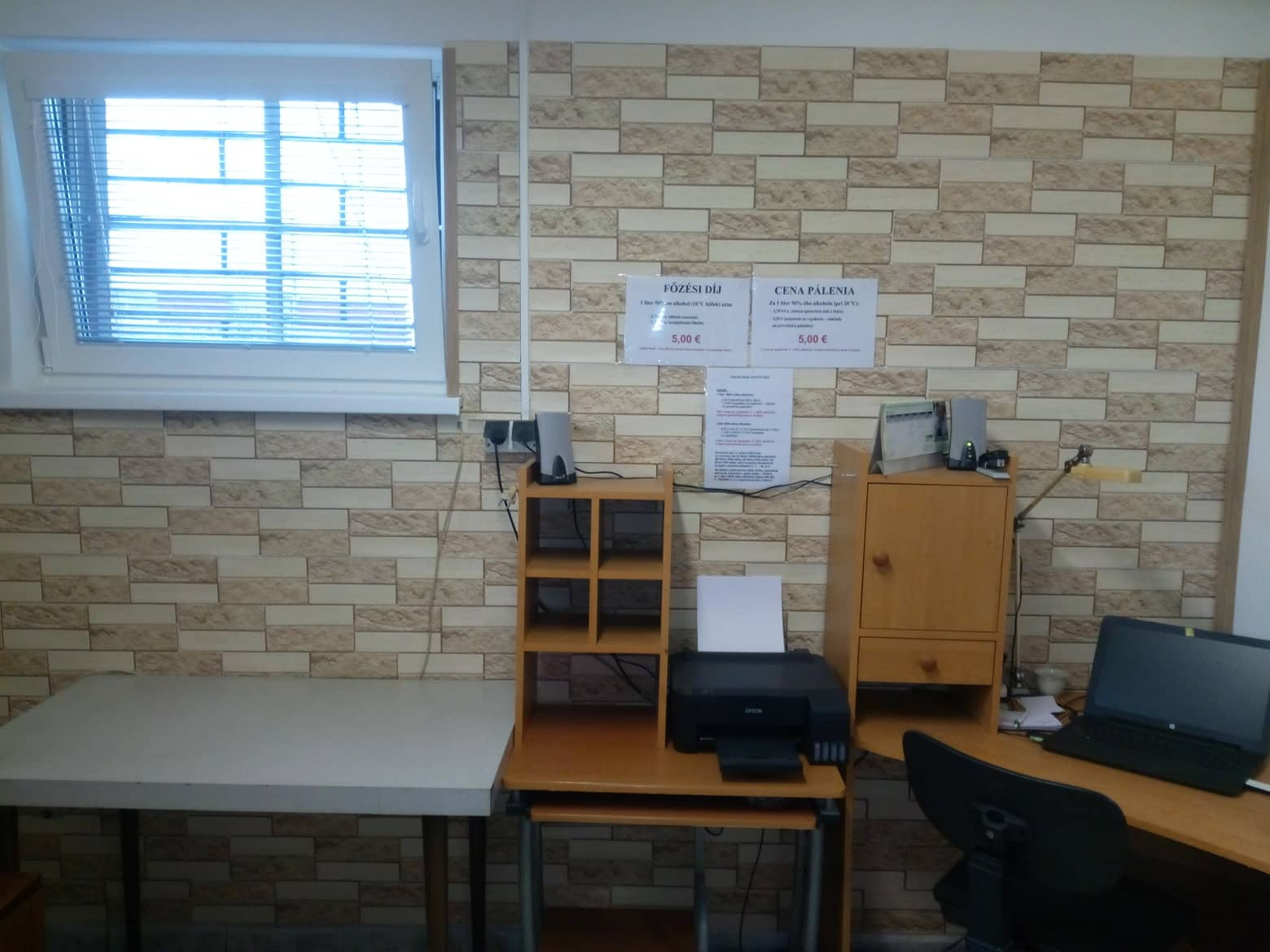 Cenník pre zákazníkov obecnej pestovateľskej pálenice:
